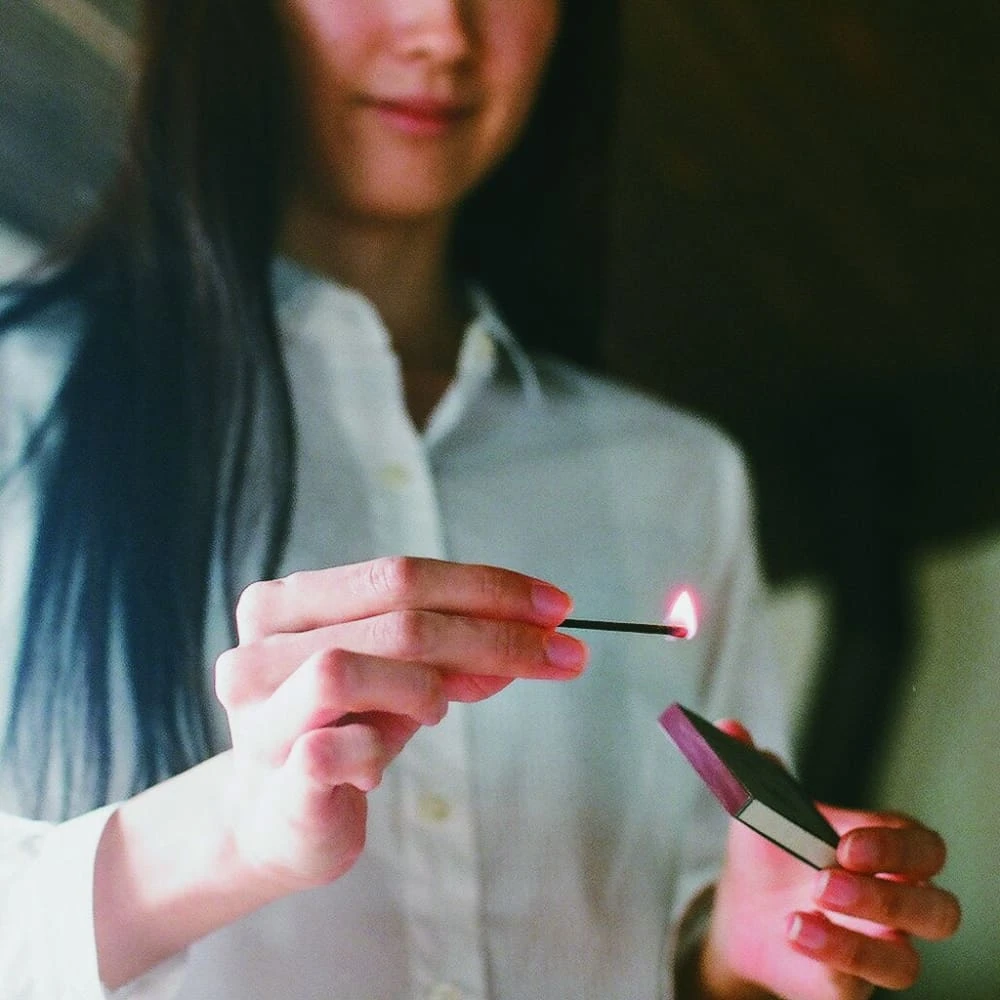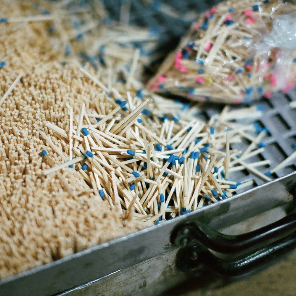 Hibi incense 10 minute aroma started with a match factory and an incense factory on a mission: to create a new product from two crafts. The result is a collection of incense matchsticks. No wood is used, it is pressed incense powder. Japanese incense is usually very brittle, so hibi uses a bit of washi pulp to make it strong enough to strike.