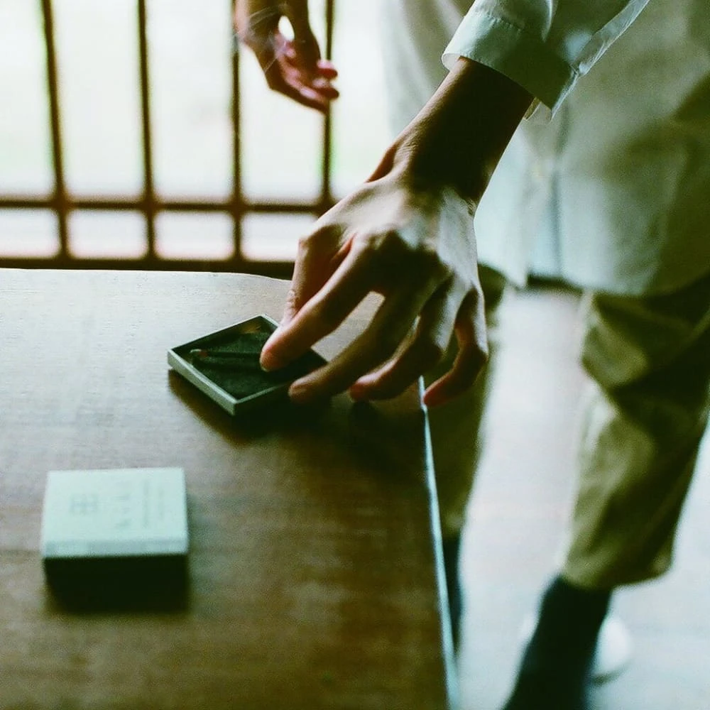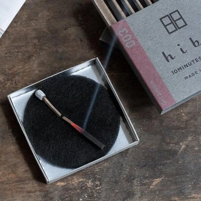 Hibi incense 10 minute aroma started with a match factory and an incense factory on a mission: to create a new product from two crafts. The result is a collection of incense matchsticks. No wood is used, it is pressed incense powder. Japanese incense is usually very brittle, so hibi uses a bit of washi pulp to make it strong enough to strike.