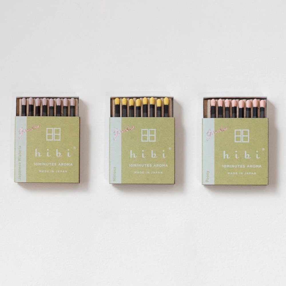Hibi incense 10 minute aroma started with a match factory and an incense factory on a mission: to create a new product from two crafts. The result is a collection of incense matchsticks. No wood is used, it is pressed incense powder. Japanese incense is usually very brittle, so hibi uses a bit of washi pulp to make it strong enough to strike.