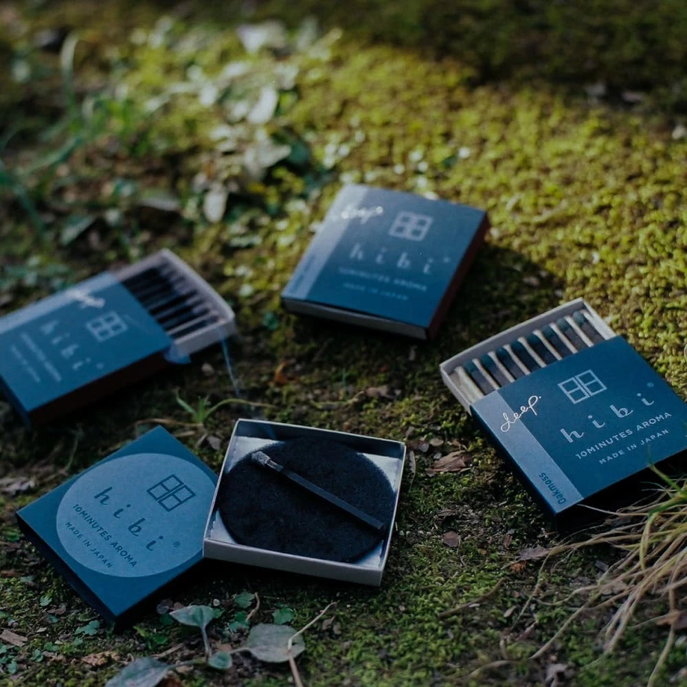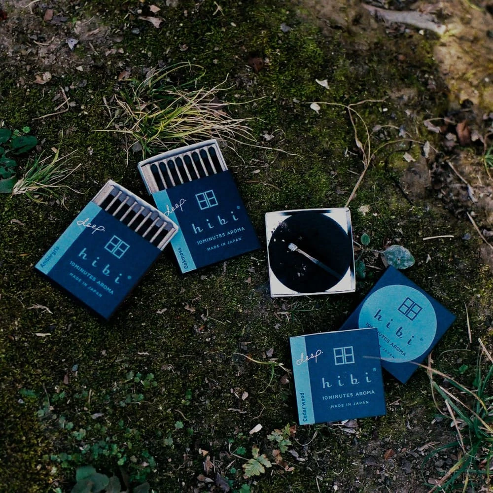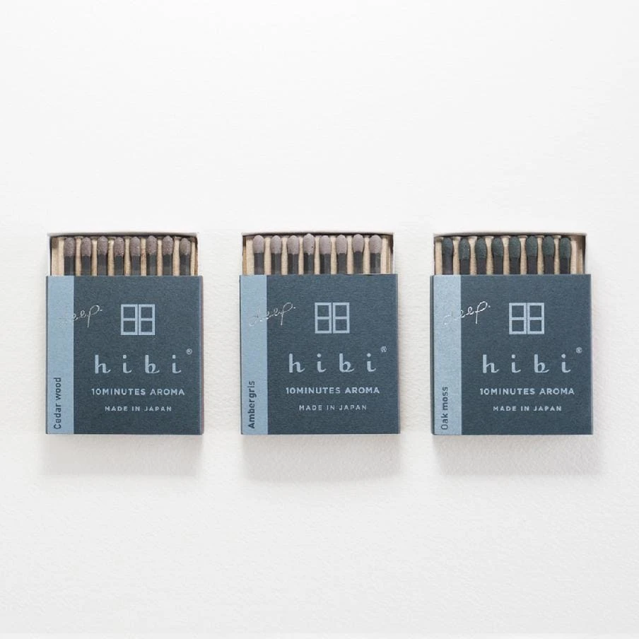 Hibi incense 10 minute aroma started with a match factory and an incense factory on a mission: to create a new product from two crafts. The result is a collection of incense matchsticks. No wood is used, it is pressed incense powder. Japanese incense is usually very brittle, so hibi uses a bit of washi pulp to make it strong enough to strike.