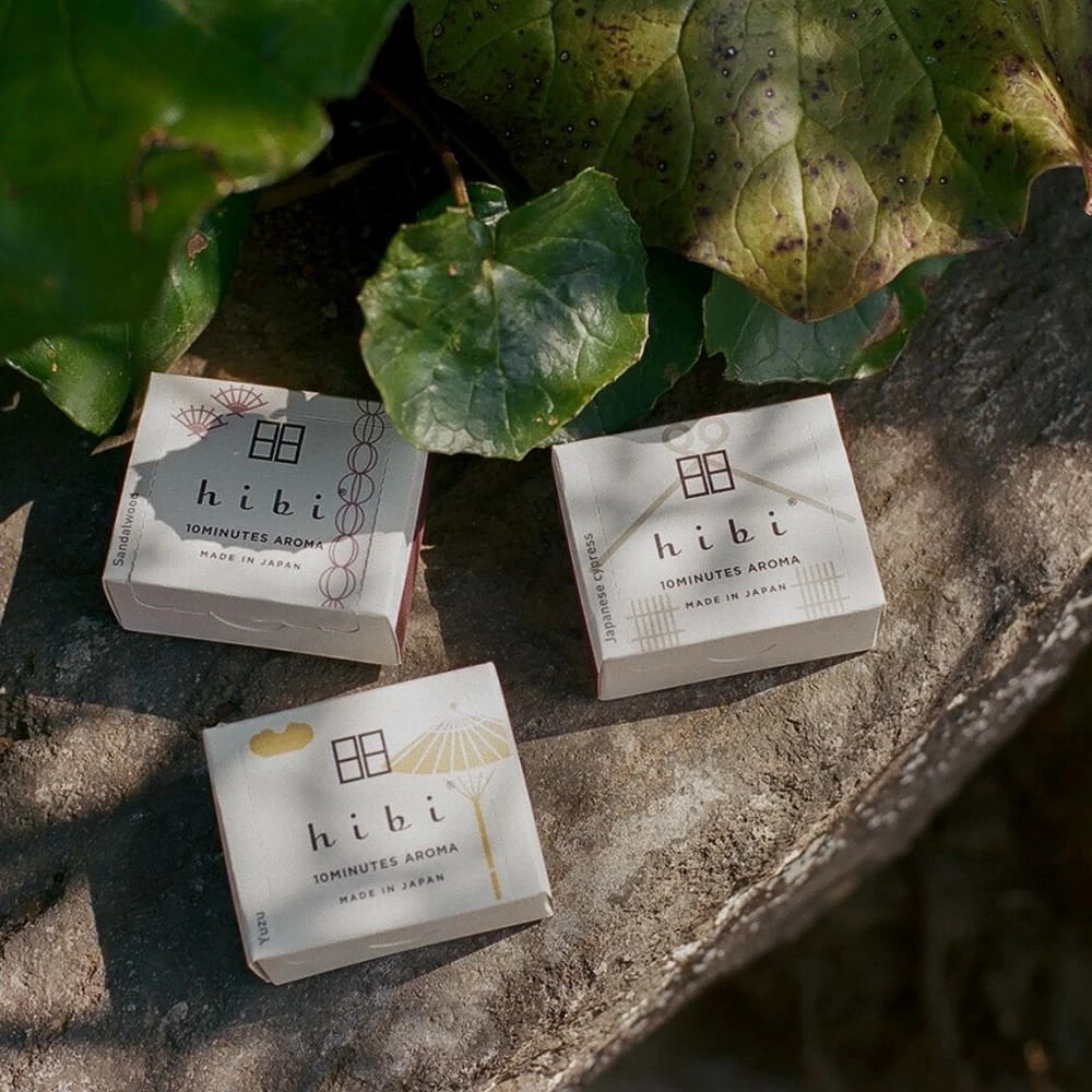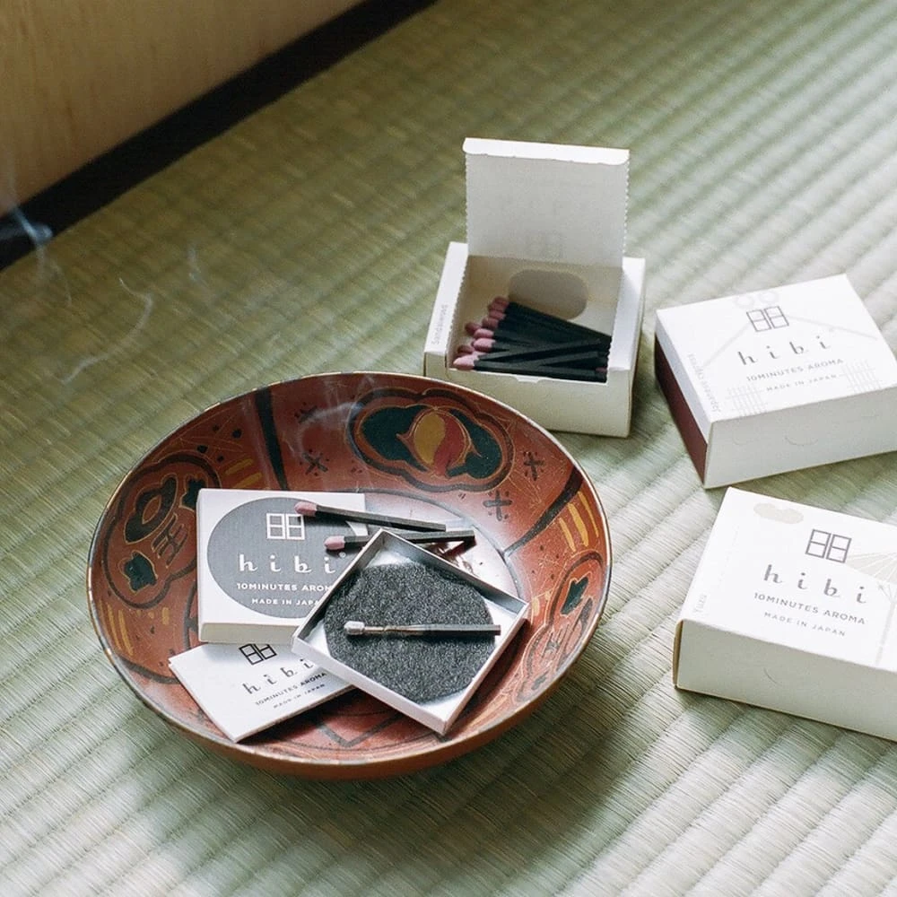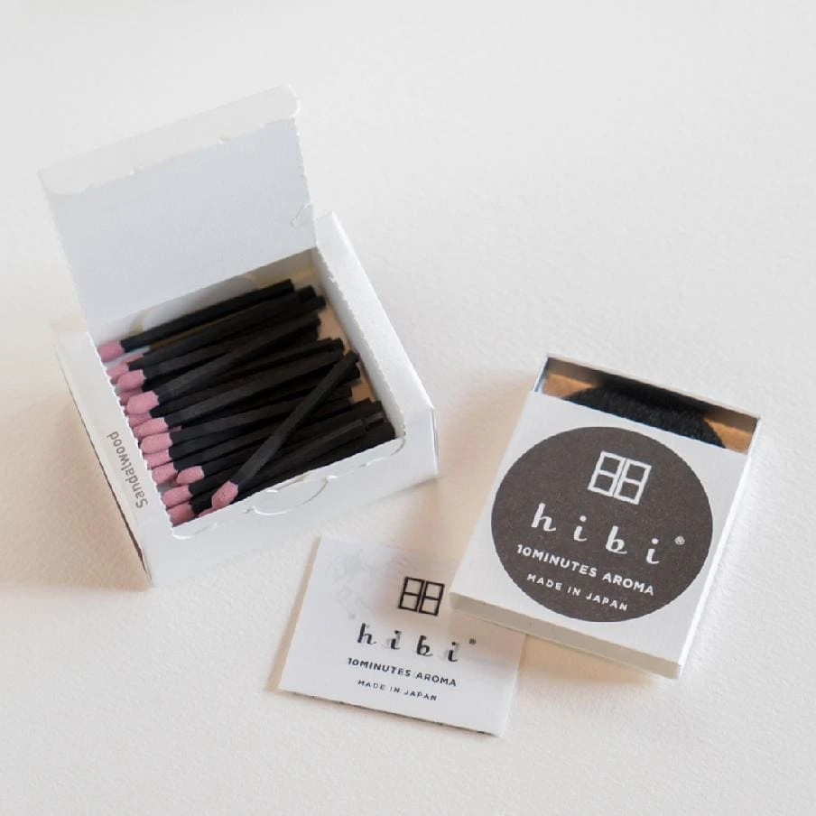Hibi incense 10 minute aroma started with a match factory and an incense factory on a mission: to create a new product from two crafts. The result is a collection of incense matchsticks. No wood is used, it is pressed incense powder. Japanese incense is usually very brittle, so hibi uses a bit of washi pulp to make it strong enough to strike.