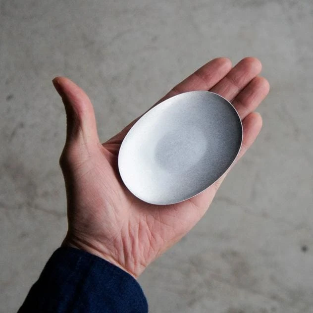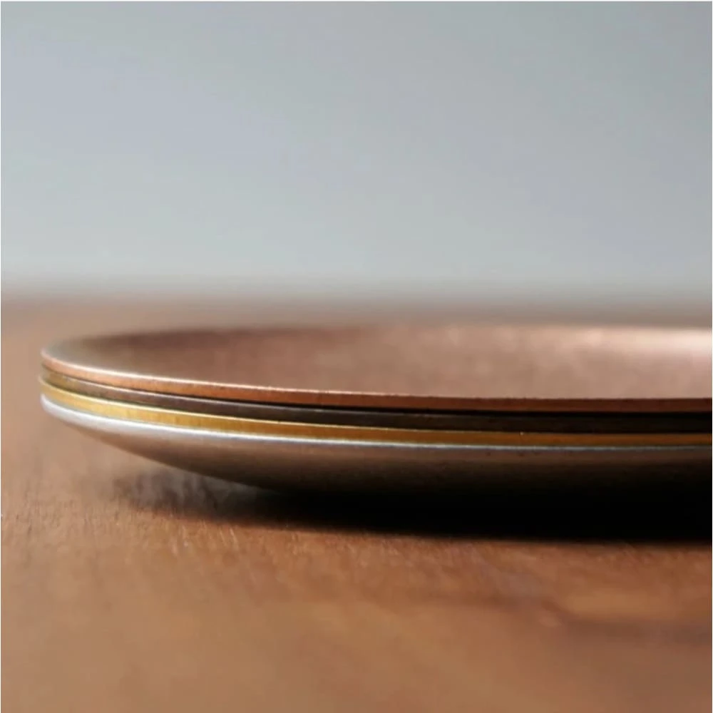 Manufactured in Japan, these shiny dishes have an organic appearance and texture that matures with use. Use as a dish for soap, jewelry, keys, or under an incense holder. Available in copper or brass.