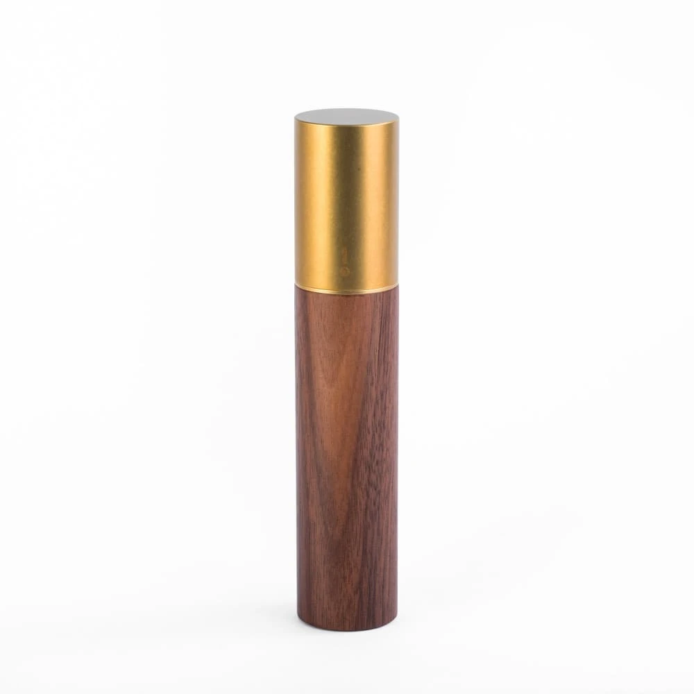 The pen case is a hollow round container pieced together by brass and walnut wood. Unscrew to open the upper cover. The brass and the walnut are both lights, fresh, and pure in the beginning, but will become darker as time goes by. The most qualified materials are selected, expected to be a lifetime stationery.