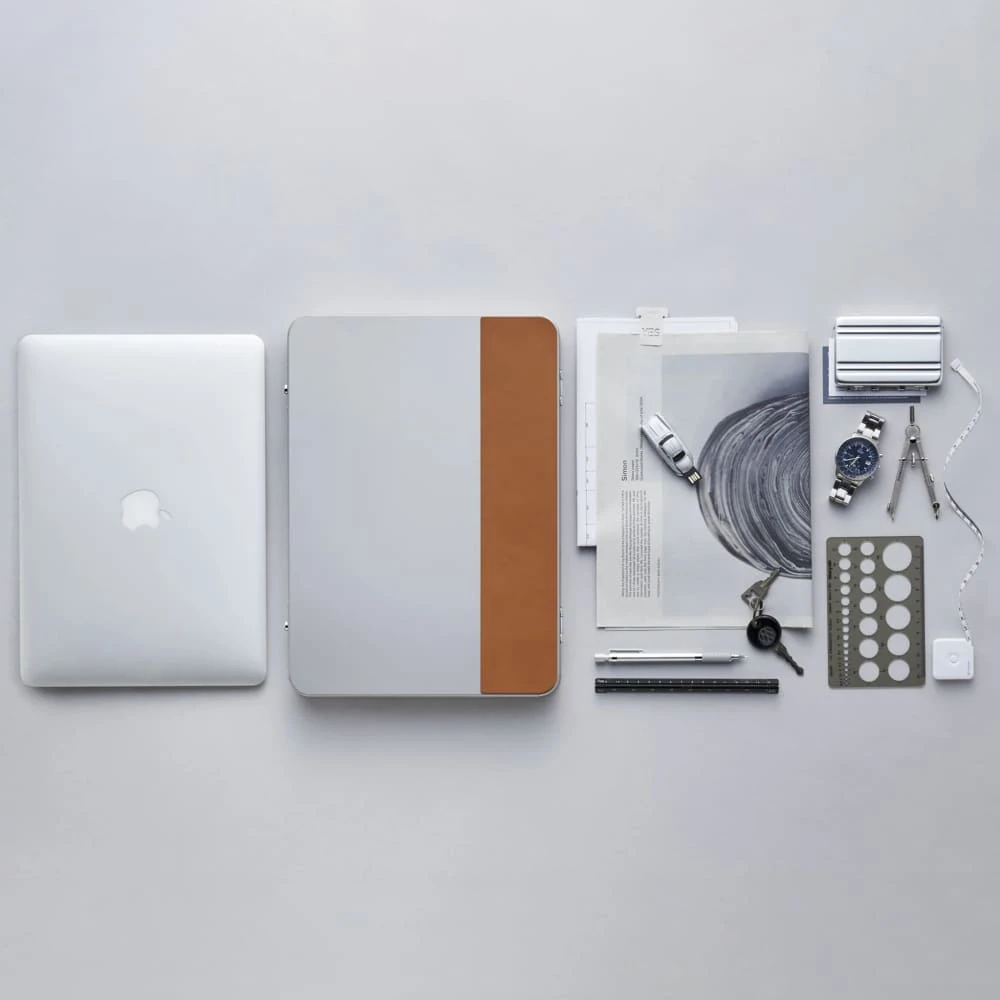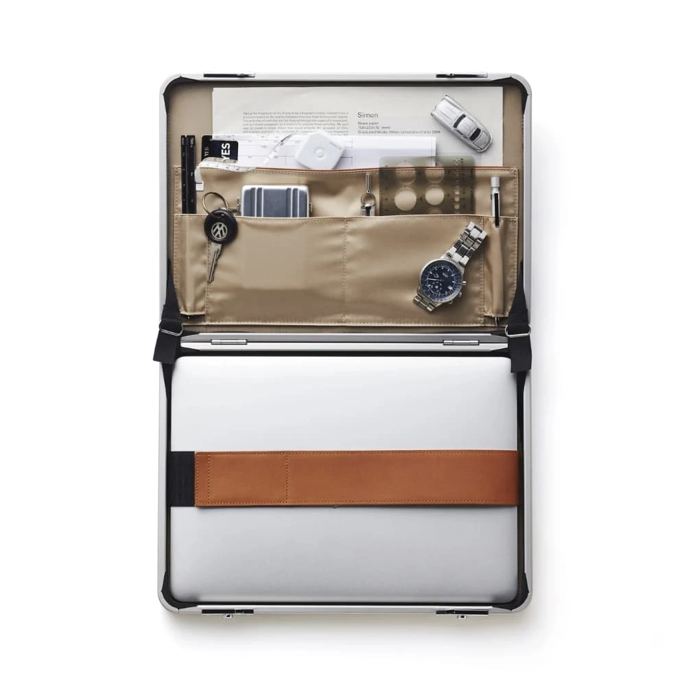 Constructed from premium alloy aluminum, the KONSTELLA K-002 BLACK offers unparalleled protection for your laptop and documents. Its durable and functional design is complemented by cushions and a leather bundle that safeguards your belongings from damage.