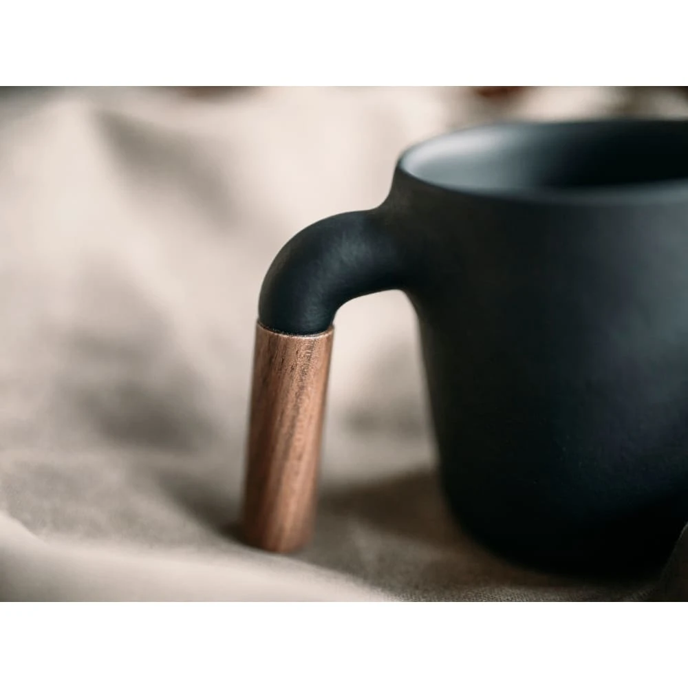A serene landscape where earth meets wood. Mugr is our first product in the HMM Coffee Series. Through 11 artisanal processes, Mugr is smooth to the touch and soft to the lips, easy to stack and easy to clean. Handcrafted by Taiwanese artisans, the body of the Mugr is made with quality Japanese ceramics and coated with our signature glaze to create the unique look and feel of cast iron, while the handle is made with fine walnut to form the easy to hold [r] shape.