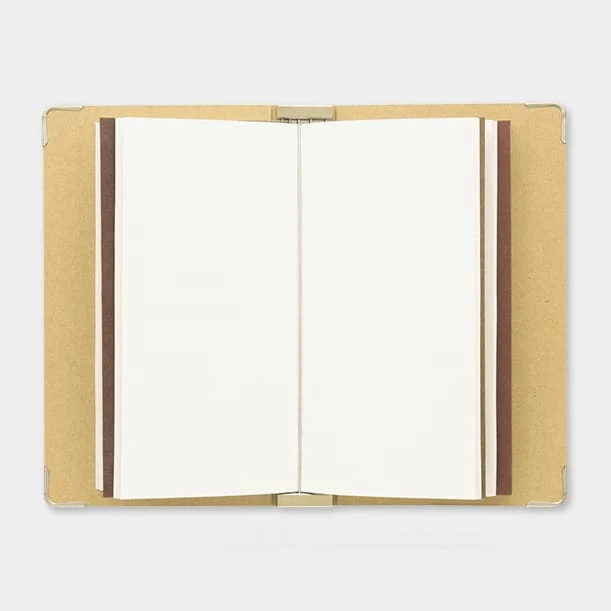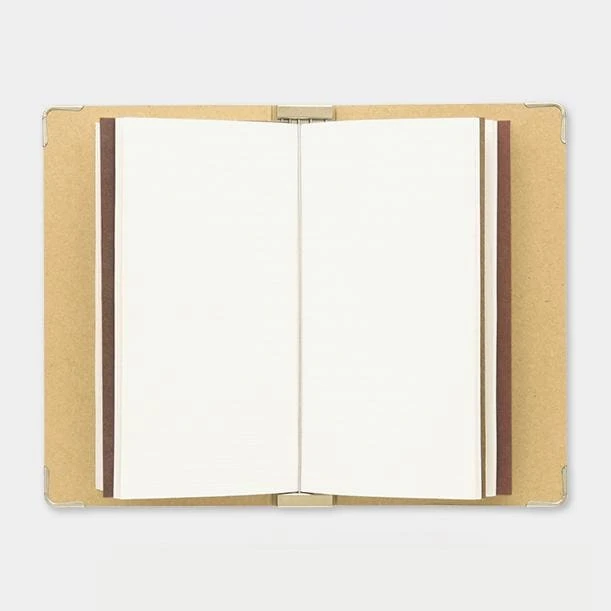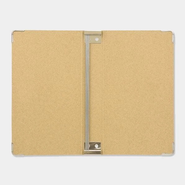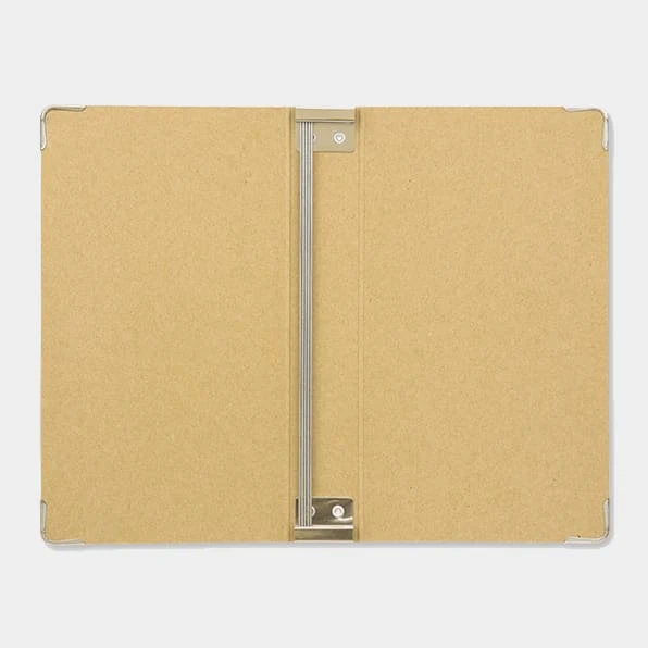 This is a binder used to set TRAVELER’S notebook Passport Size refills. The metal parts will allow you to set five refills, please use this to keep your past refills. By looking back at your past refills, you should be able to receive wisdom and courage from your past self.